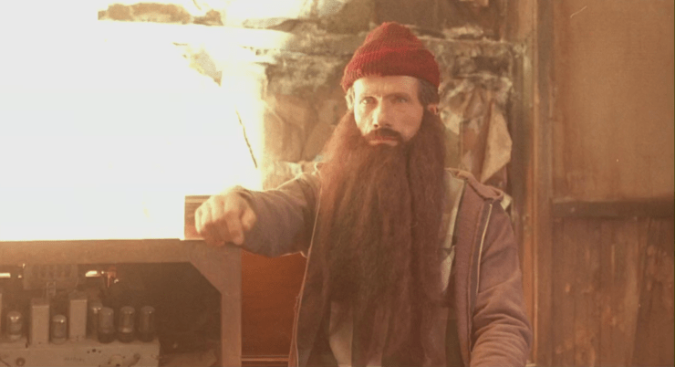 His skull crushing ability and emotionless face when doing so is about as horrific as Twin Peaks has been this side of the Glass Box murders, Lynch once again flexing his ability to show whatever he damn well pleases on Showtime. The words that The Lumberjack speaks – “This is the water and this is the well. Drink full and descend. The horse is the white of the eyes, the dark within” – act like an incantation. The water is his evil, the well perhaps the radio waves filled with his voice. The listeners drink from the well and descend. It suggests to me the idea of evil as a communicable disease; an airborne parasite let loose by the nuclear test.