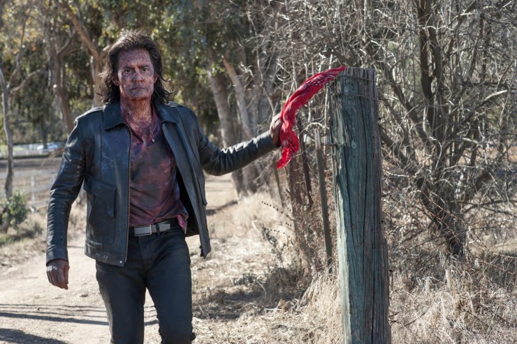 So there are spaces in the story, intentional pauses, and that’s okay. There are enough intriguing developments to allow for pauses. But then there are also the other scenes that tend to infuriate; the seemingly inconsequential. This week, see Jerry Horne (David Patrick Kelly). We visit Jerry in the woods, again. He’s high, it seems safe to say, and under the impression that his foot is someone else’s. The scene ends comically with him yanking himself over and in a very real sense, it’s needless. But it’s another example of the way in which Twin Peaks delineates itself from other programming. Jerry’s mishap is as much a part of the experience as the arrest of Ike ‘The Spike’ (Christophe Zajac-Denek) or the return to the narrative of weeping murder suspect William Hastings (Matthew Lillard). You could streamline the experience, take out the Jerry Hornes or the Waldo Brandos, but it would all feel a little less.
