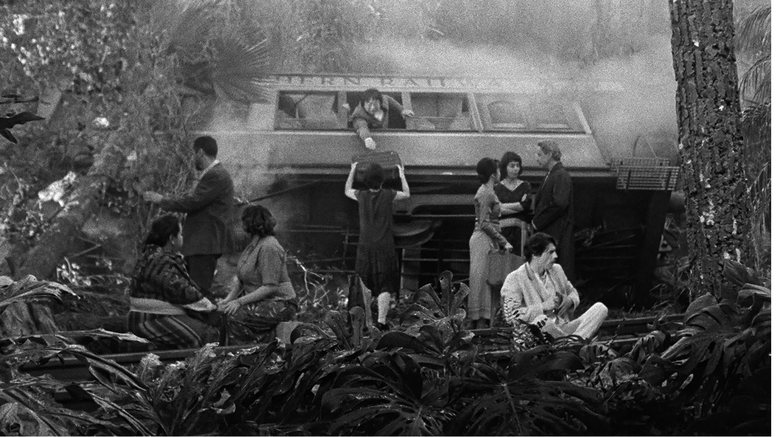 And this is thanks to the beguiling sense of style that permeates. The arresting sight of the aforementioned derailed train carriage (first encountered in Edward’s story) is a more evocative surprise than the destructive action could have been, and Gomes understands the beauty of smoke in the same way David Lynch did. Texture is an abundant pleasure in the grainy cinematography. The gleaming surface of a river, elsewhere, has the slick oiliness of metallic paint.
