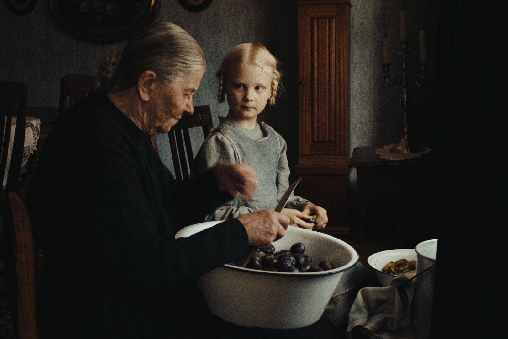 In the 1910s, seven-year-old Alma (Hanna Heckt) is confronted with death on All Souls’ Day, before her parents deliberately cause her older brother Fritz (Filip Schnack) to lose a leg in a ‘work accident’ in the family barn (so as to avoid drafting into the army, one assumes). By the 1940s, Fritz’s care has fallen to teenage sisters Erika (Lea Drinda) and Irm. Erika identifies keenly with her ward, tying her own leg up to mimic his condition. Schilinski evidences her burgeoning sexuality via a fascination with the sweat slipping into his navel.
